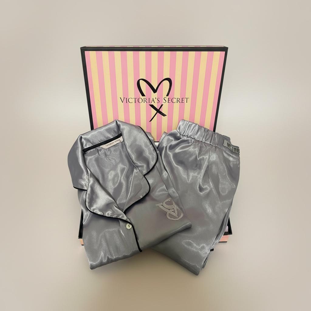 5008 Gümüş gri uzun pijama takımı