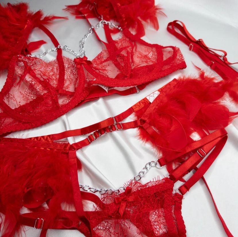 Şıklığı ve zarafeti bir arada sunan Kırmızı Gold ve Tüy Detaylı Jartiyer Takım ile her anınızı özel kılın. Hem kendinize hem de sevdiklerinize hediye edebileceğiniz bu eşsiz takım, iç giyimdeki yerinizi alacak. Şimdi satın alarak bu eşsiz tasarımın tadını çıkarabilirsiniz!