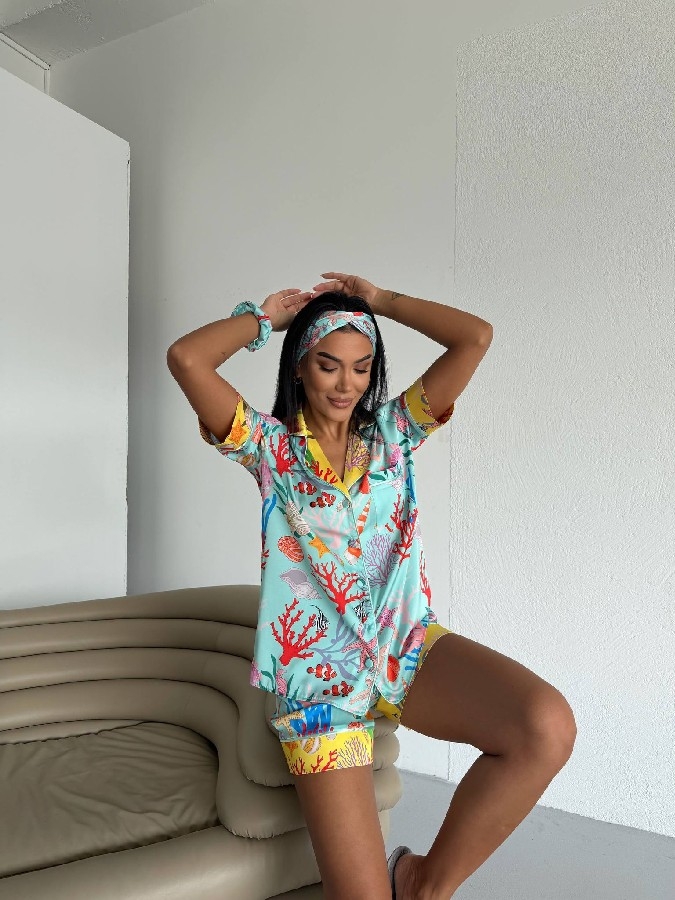 ✨ Yumuşacık dokusu ve enerjik desenleriyle konforu ve şıklığı bir araya getiren bu özel saten pijama takımı, ev stilinize yepyeni bir dokunuş katıyor.