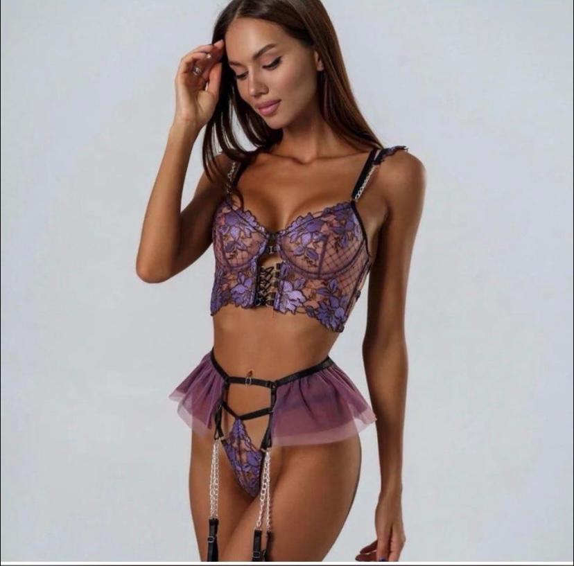 Siyah-Lila Gübür Zincir Detaylı Jartiyer Takım