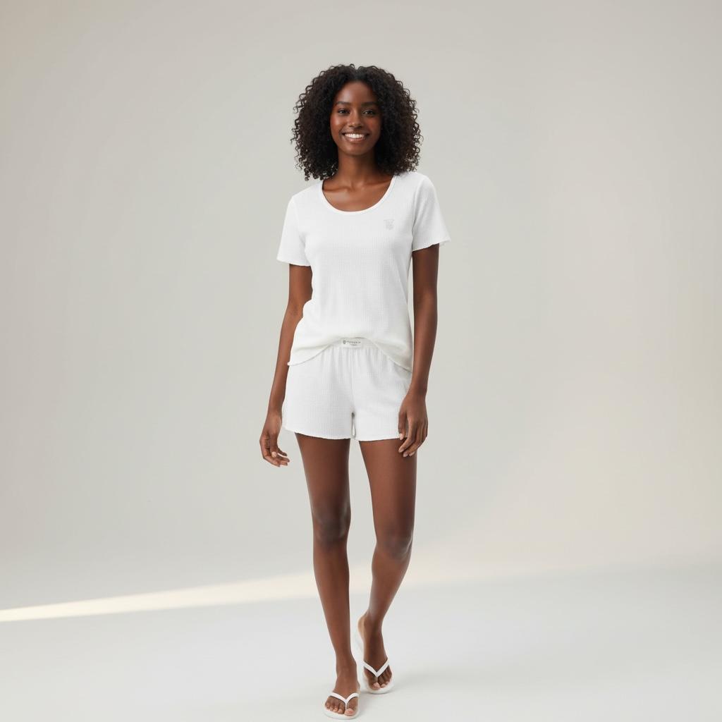 VS Ecru fitilli tşort sort takım