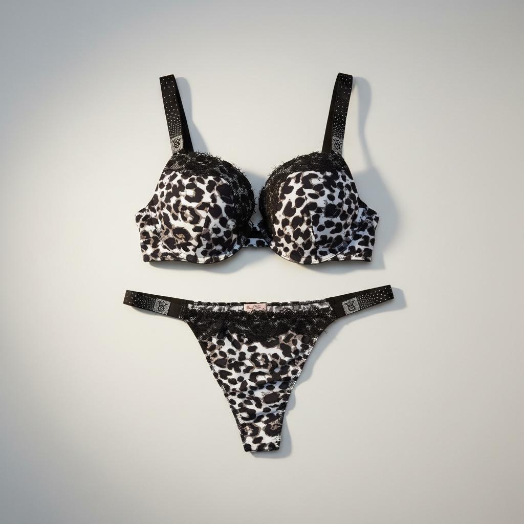 Şıklığın ve zarafetin bir araya geldiği VS Siyah Beyaz Desenli Taş Detaylı Sütyen Takımı, her kadının giyim dolabında bulunması gereken özel bir parçadır. Bu eşsiz takımı, günlük kullanımda ya da özel anlarda kendinizi daha çekici hissetmenize yardımcı olacak şekilde tasarlandı.