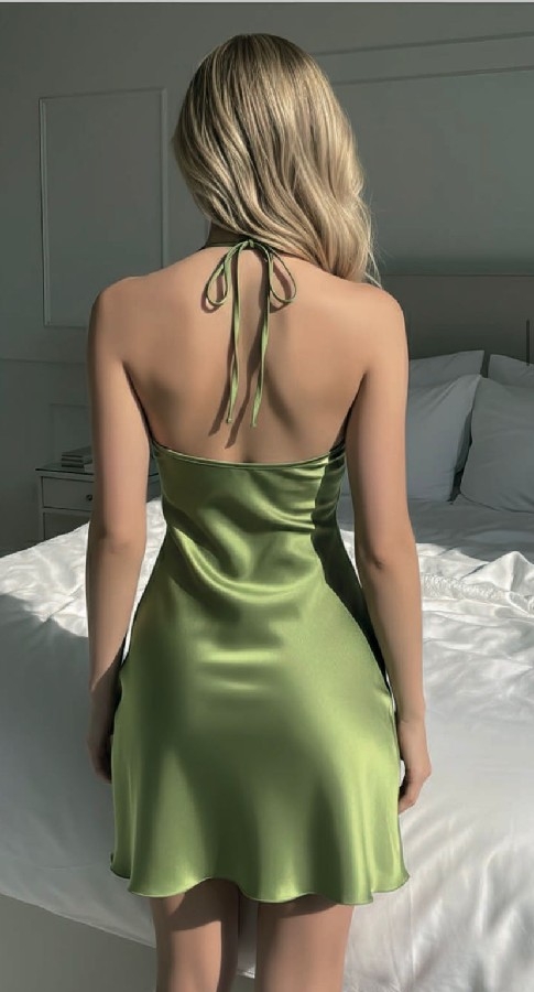 💚 Zümrüt Yeşili Saten Gecelik – Zarafetin En Işıltılı Hali